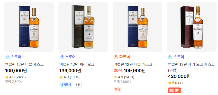 면세점 가격은 11만 원입니다. 시중에는 셰리오크, 더블 캐스크 등 가격 차이가 있습니다.