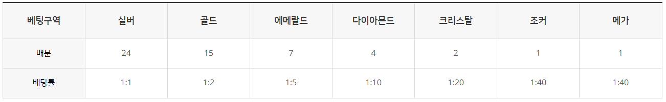 당첨된 베팅은 정해진 배당률에 따라 Pay됩니다.