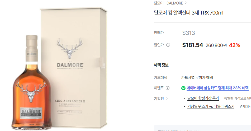 Dalmore 킹 알렉산더 3 TRX는 다수 캐스크의 풍미가 조화롭게 공존하는 고급 싱글몰트입니다. 위스키 애호가 또는 특별한 날의 기념주로 매우 적합한 선택입니다.