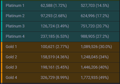 플래티넘, 골드까지가 상위 50% 입니다.