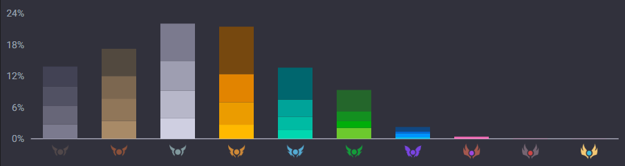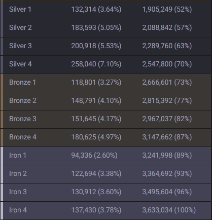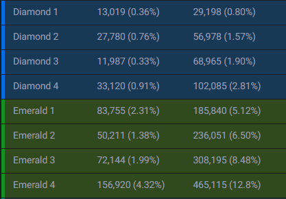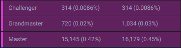 롤티어별 소환사수입니다. 티어 순서와 등급은 아래 글 참고하시면 도움이 됩니다. 한국서버 기준입니다.