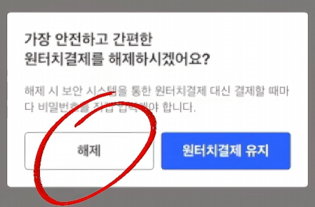 2. 결제수단 원터치 결제 해제 방법