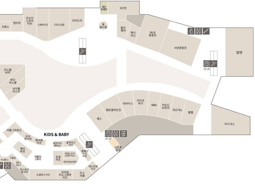 롯데시네마, 식당가, 골프존마켓, 레고 등